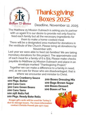 The mission of Immaculate Conception Church of North Little Rock is to prepare souls for Heaven and to care for our community through the proclamation of the Word of God, availing them of the Sacraments of our Catholic Faith and the varied ministries and organizations serving our adult and youth population.